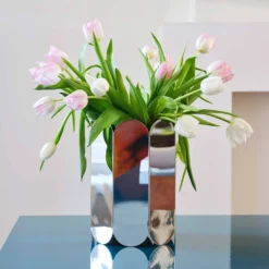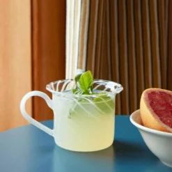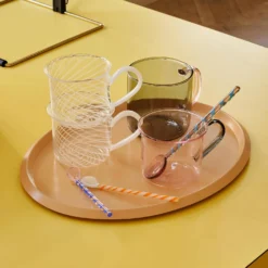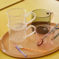 HAY Borosilicate Mug – Set Of 2 – Light Grey With Pink Handle