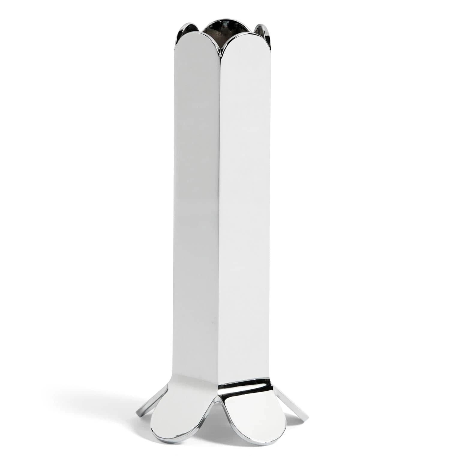 Designed by Belgian duo Muller Van Severen, the Arcs Candleholder is formed by a unified chain of vertical arcs that encase the candle to create an elegant, scalloped silhouette. Made in aluminium and steel, Arcs Candleholder is available in two heights with different colour options.