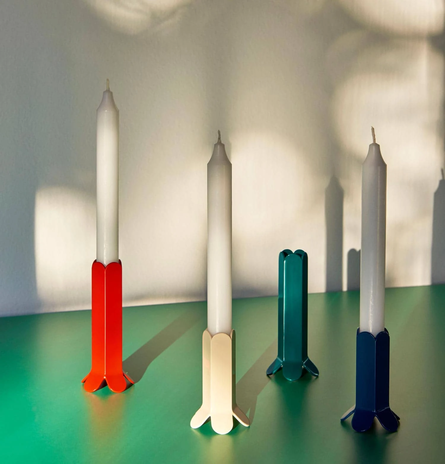 Designed by Belgian duo Muller Van Severen, the Arcs Candleholder is formed by a unified chain of vertical arcs that encase the candle to create an elegant, scalloped silhouette. Made in aluminium and steel, Arcs Candleholder is available in two heights with different colour options.