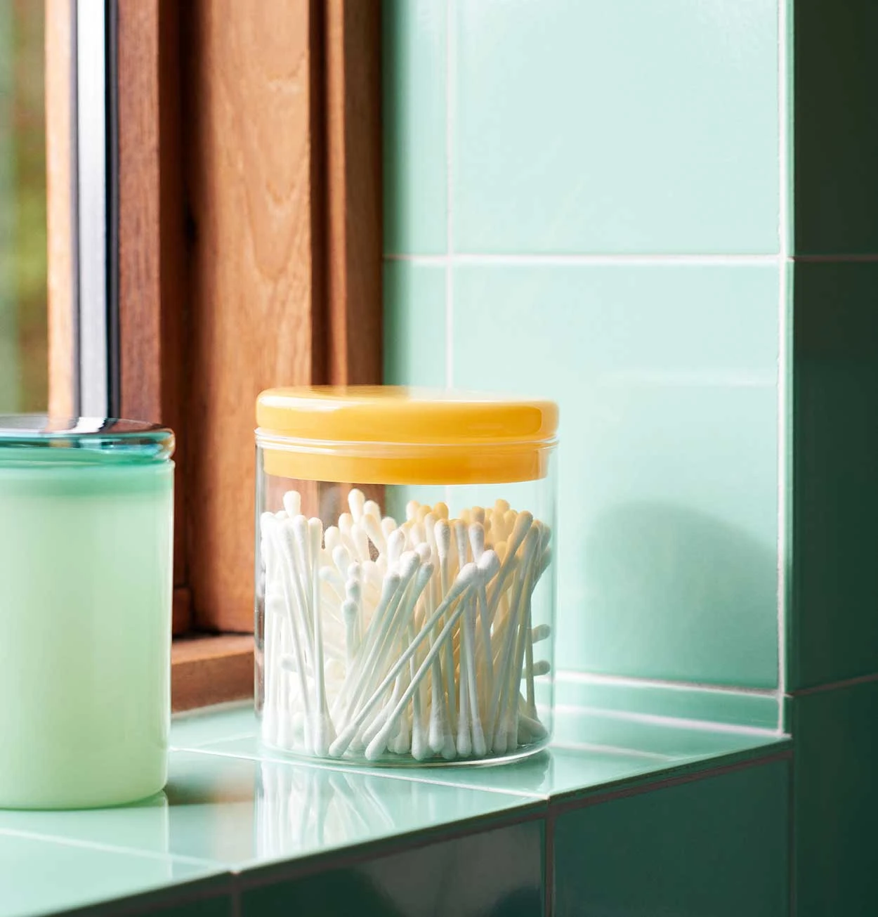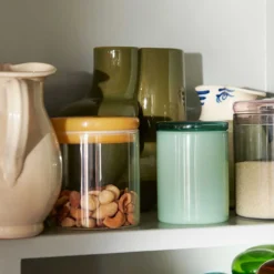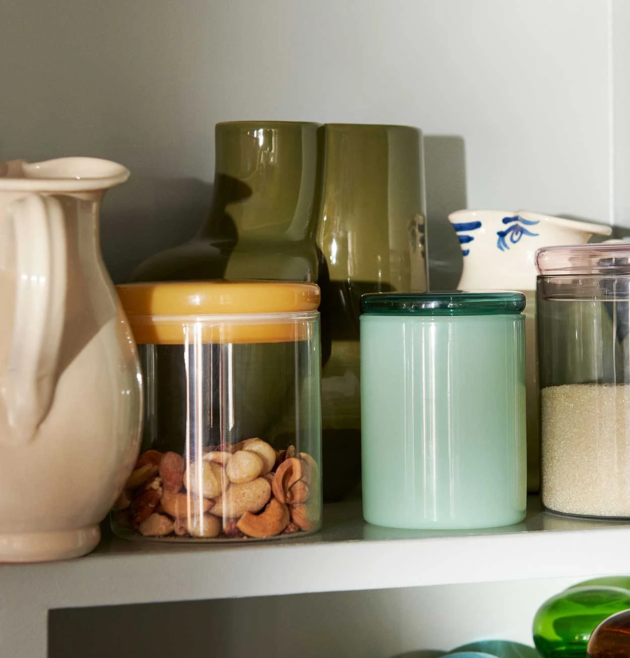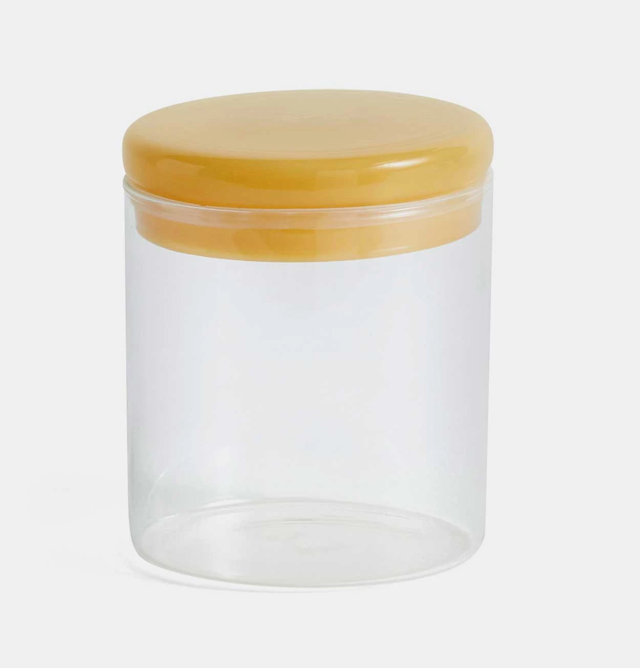 Borosilicate Jar is a multifunctional container with both decorative and functional qualities. Crafted in borosilicate glass with a contrast-coloured lid, it can be used for display or storage in most rooms in the house. The lid is sealed with a fitted silicone ring that makes it suitable for storing food, as well as trinkets and other small objects. Available in a choice of different sizes and colours.