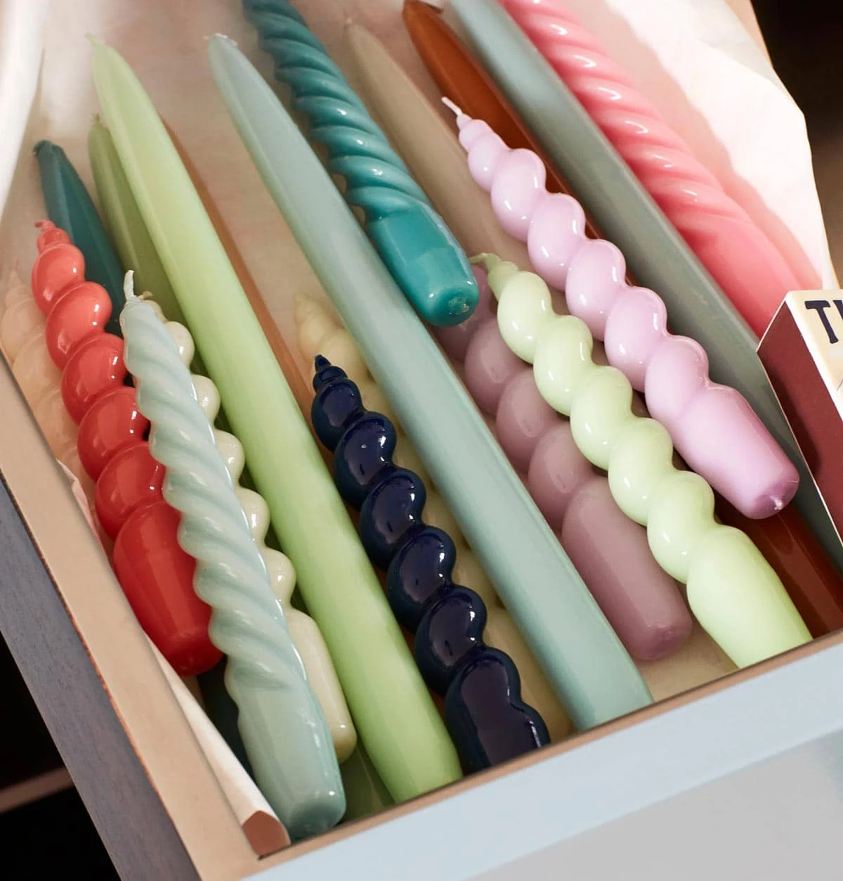 With their original shapes and extensive palette, HAY’s Candles arenβt just for burning; they can be used as decorative elements in themselves. Made in Italy, they come in twisted, conical, or spiral variants in a wide range of colours.