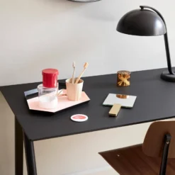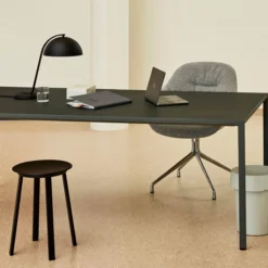Cloche is a table top lamp providing a directional light. Its black powder coated arm and off-set cast iron base creates a visual imbalance, resembling the suspension of a traditional dining cloche. The shade is available in more colours.