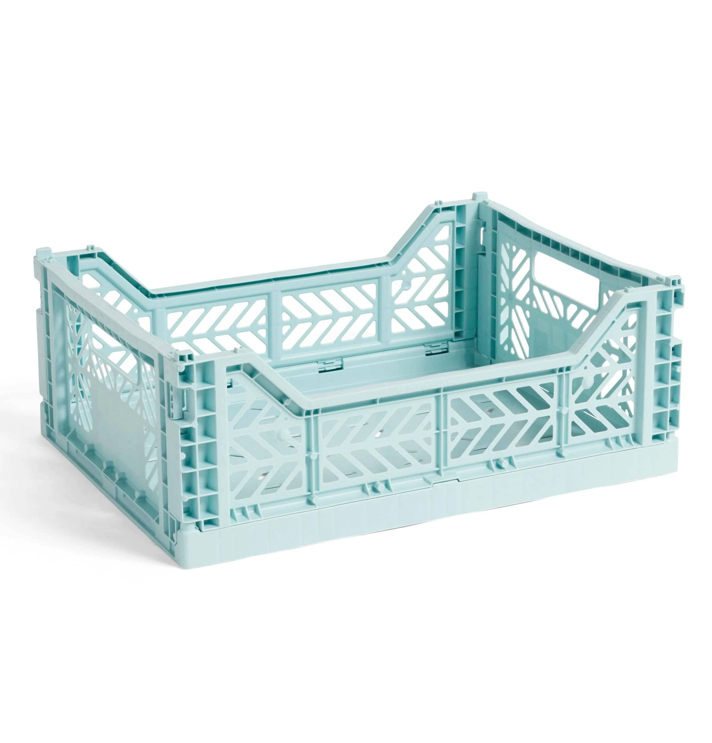 Multifunctional plastic crate with ventilated and stackable design in a variety of different colours and sizes.