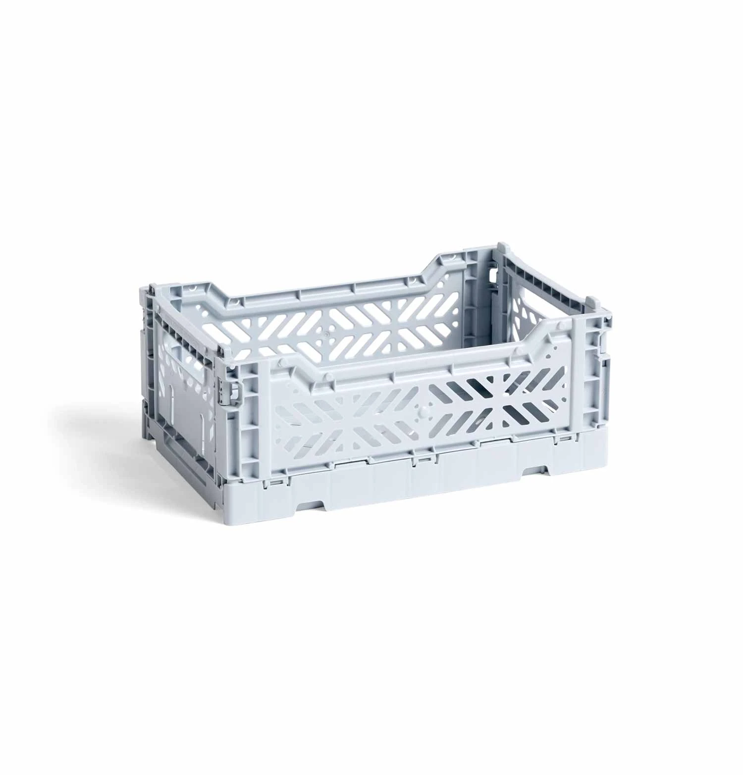Multifunctional plastic crate with ventilated and stackable design in a variety of different colours and sizes.