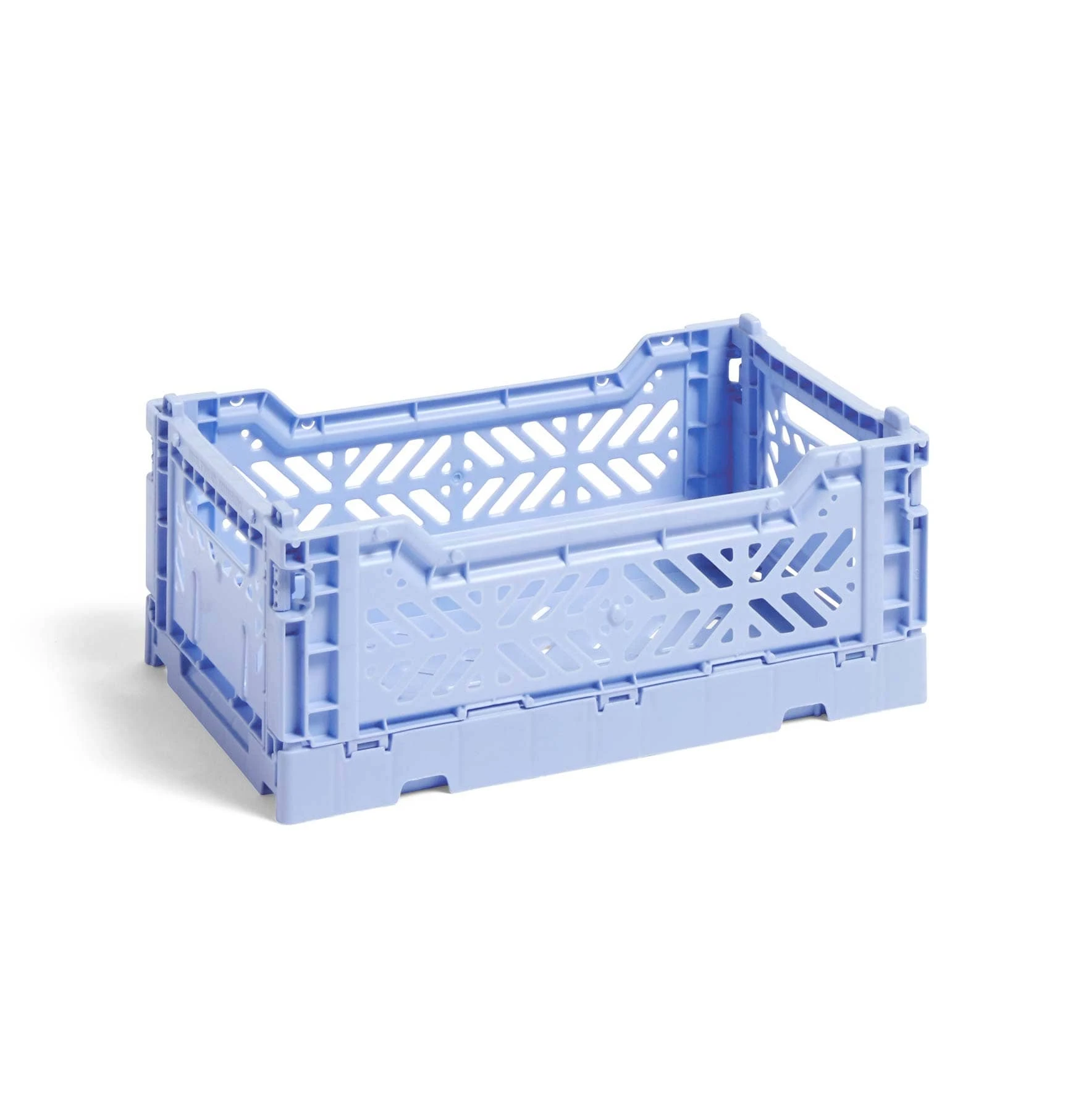 Multifunctional plastic crate with ventilated and stackable design in a variety of different colours and sizes.