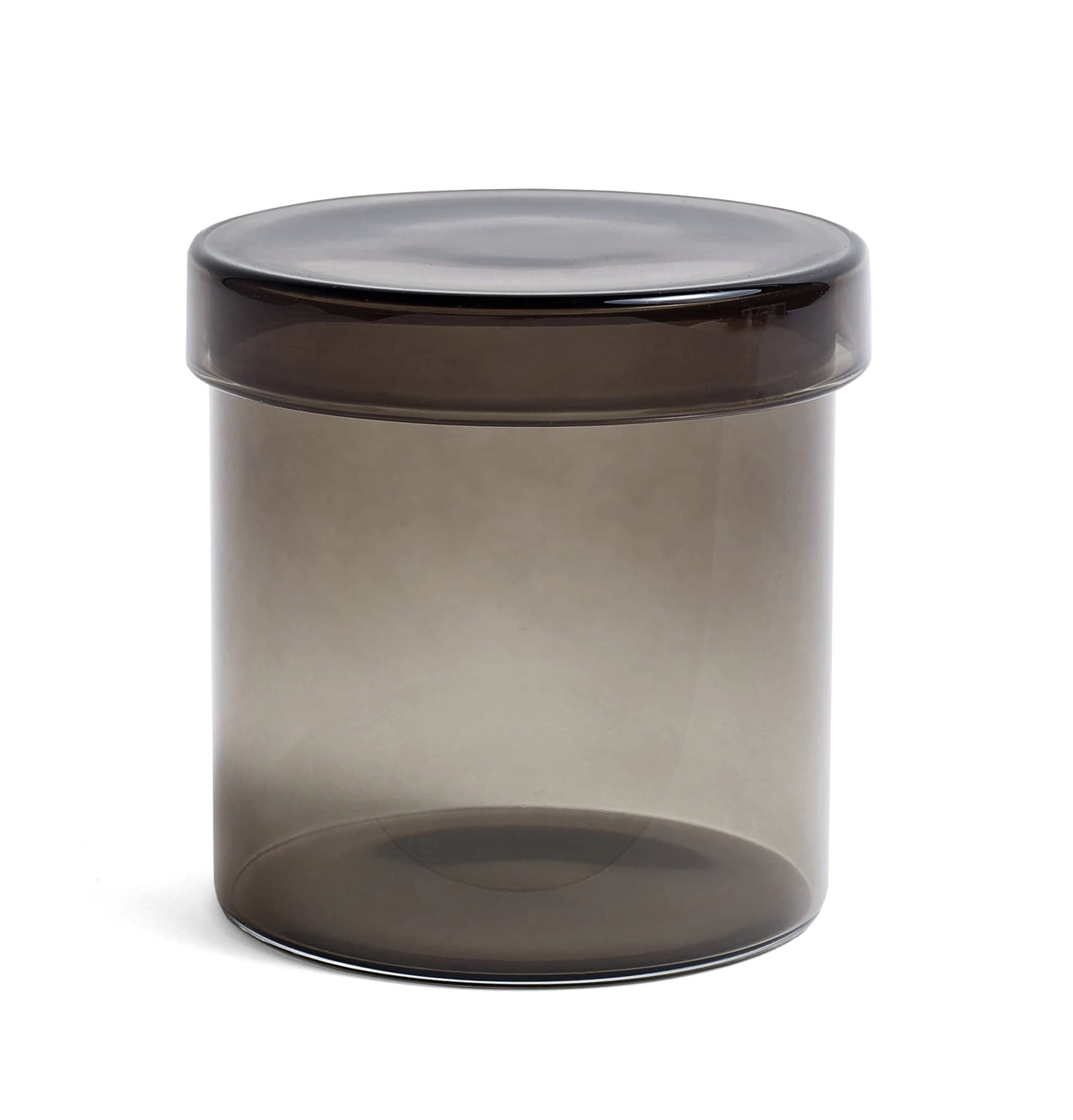 The HAY Container is a practical glass jar with matching lid designed for organising and storing small items. Available in two sizes in three different tones of glass.