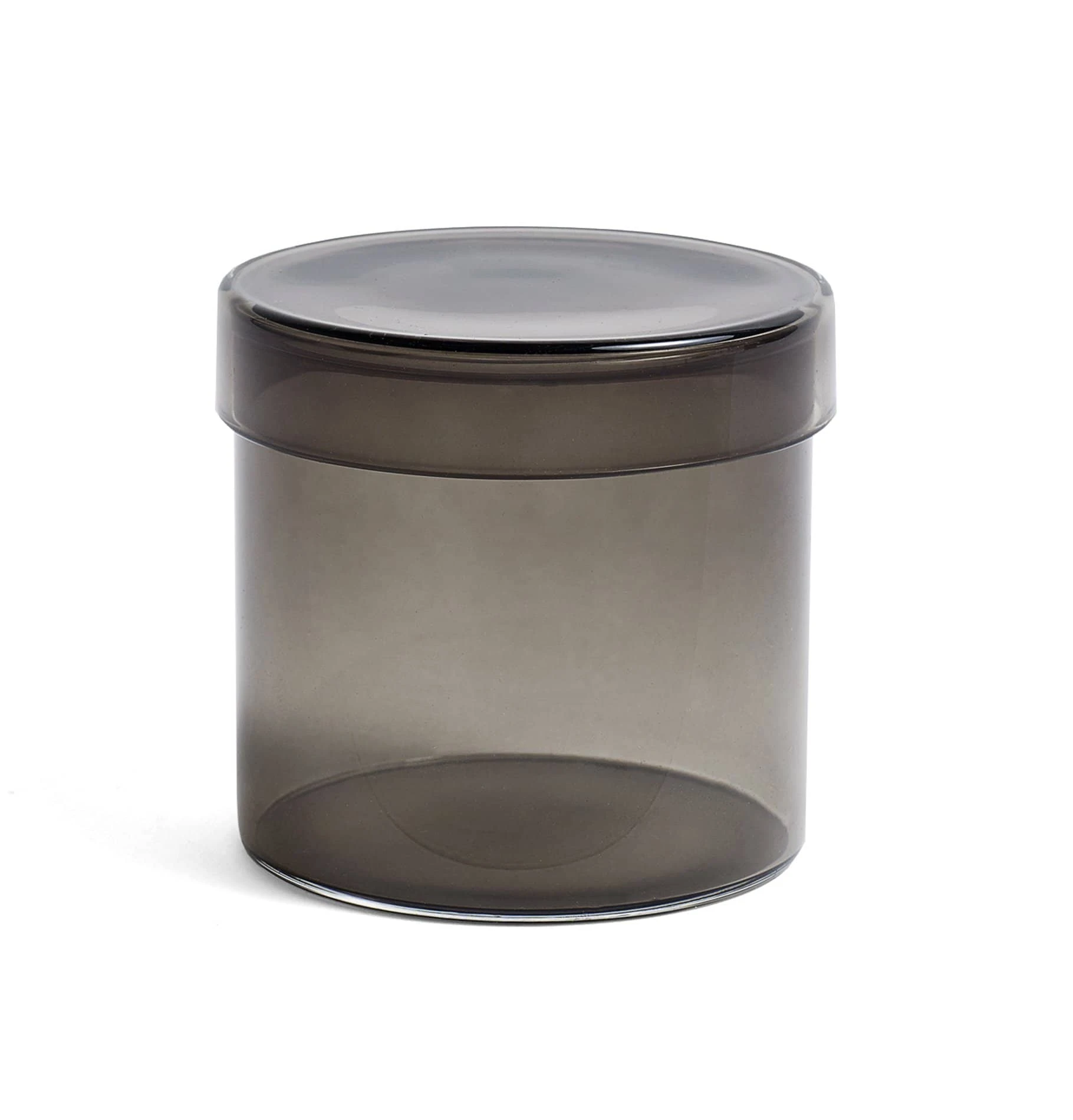 The HAY Container is a practical glass jar with matching lid designed for organising and storing small items. Available in two sizes in three different tones of glass.