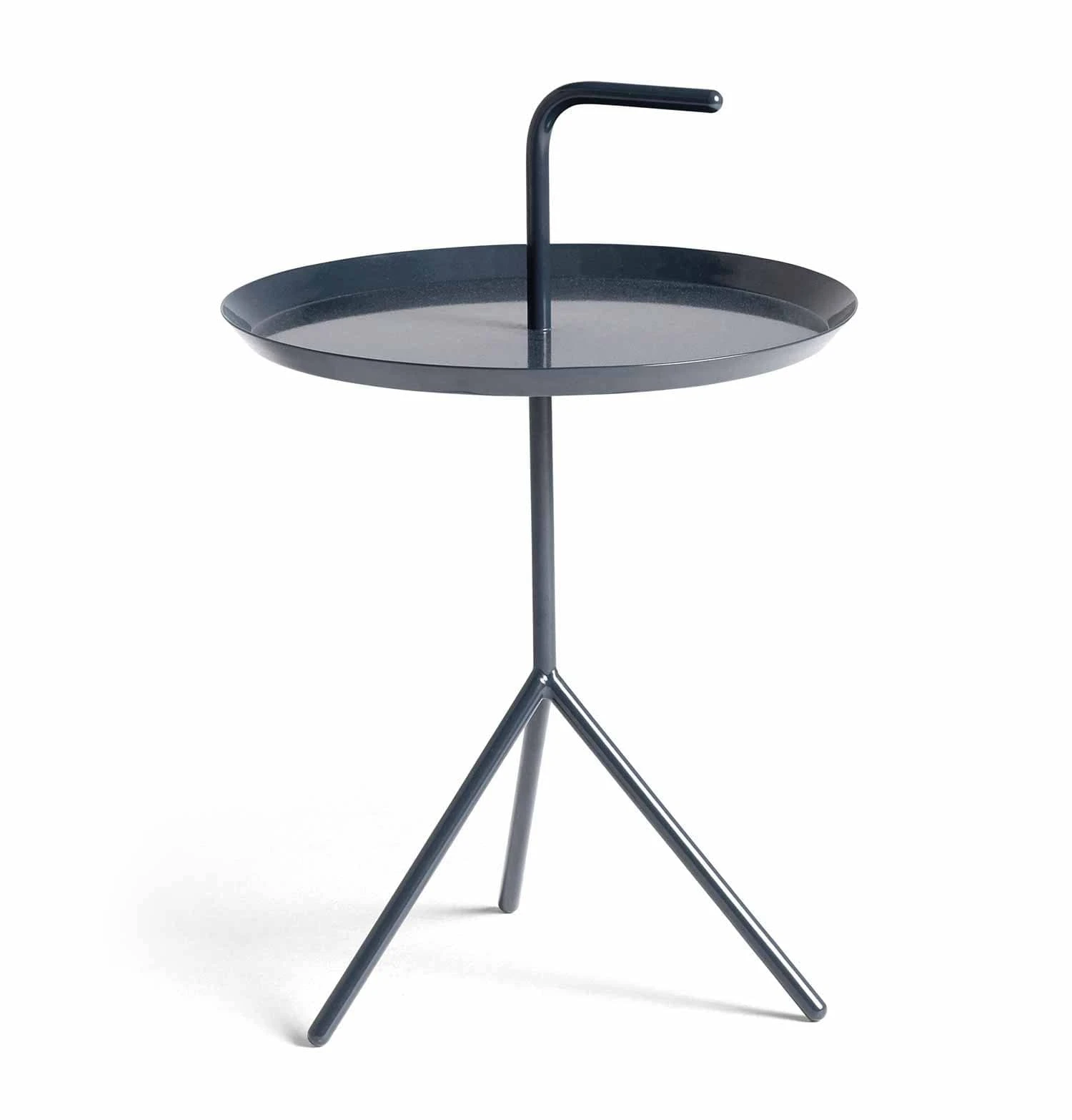 The handle at the top explains why Thomas Bentzenβs table is aptly named βDonβt Leave Meβ. Abbreviated to DLM, the little handle allows you to carry the metal side table with you from room to room, so it will always be by your side. Although it has a lightweight and portable structure, the three slanted legs provide great stability. Available in two sizes, the DLM and DLM XL make original alternatives to traditional coffee tables and can be taken along just about anywhere.