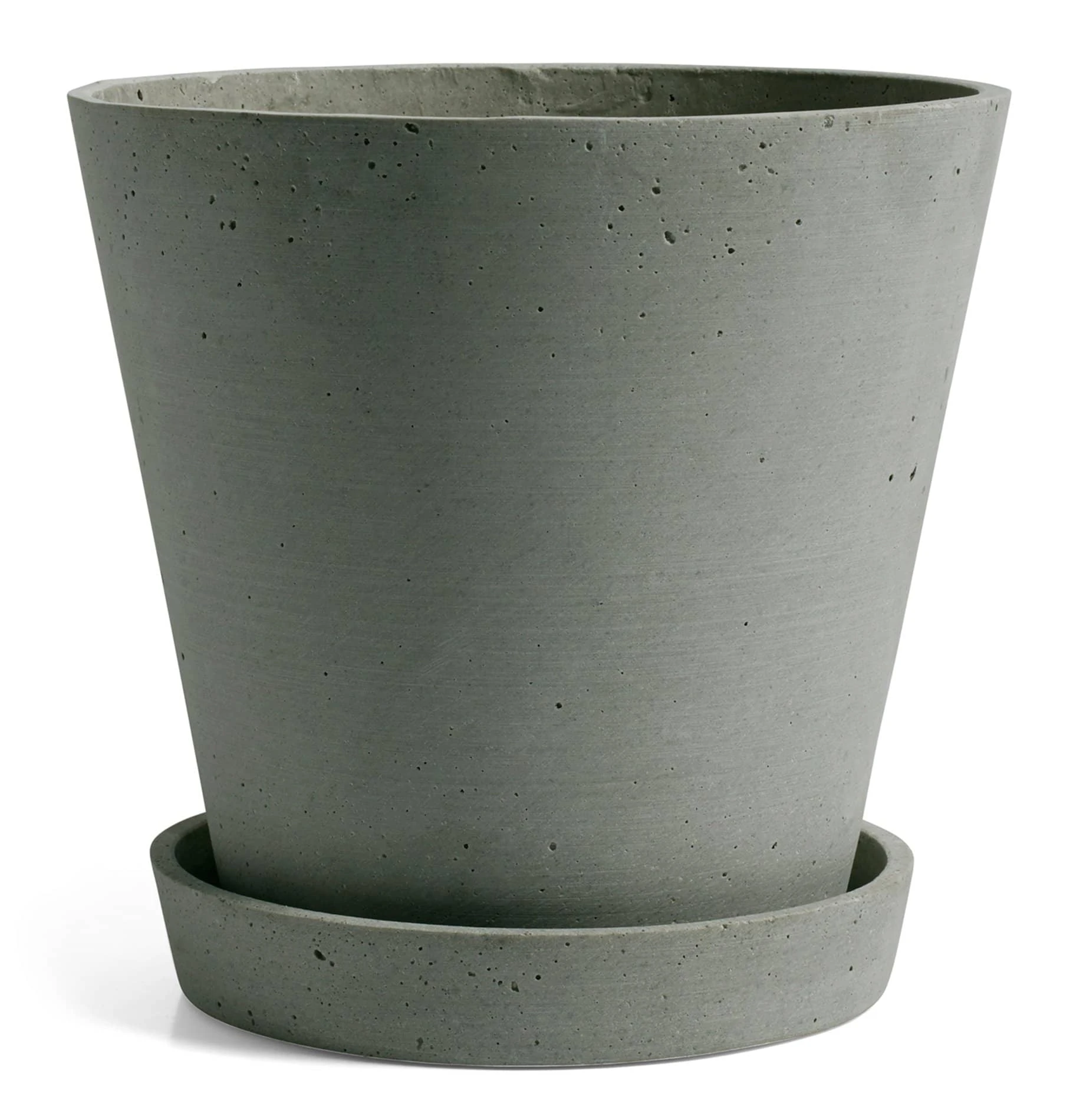 A minimalist HAY plant pot with saucer made from polystone – a cross between stone and plastic which gives a rough, organic finish similar to concrete.