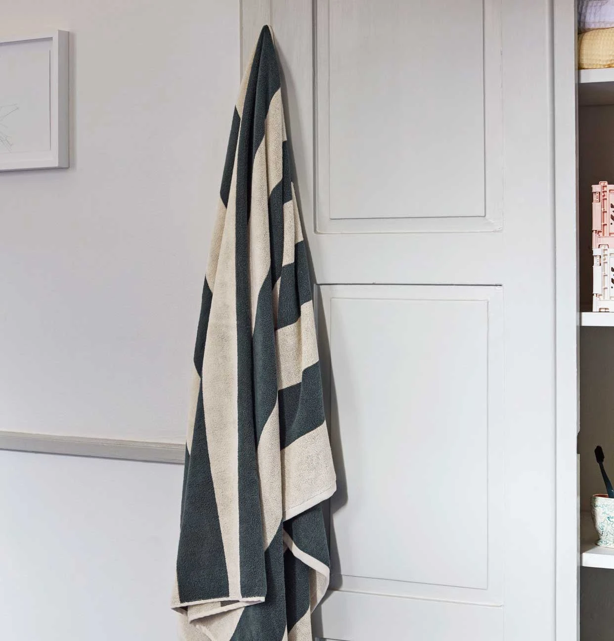 Crafted in soft, absorbent cotton, the Frotté Striped towel is designed by Amanda Borberg and features horizontal stripes in muted colours. An everyday essential for the bathroom, beach or pool.