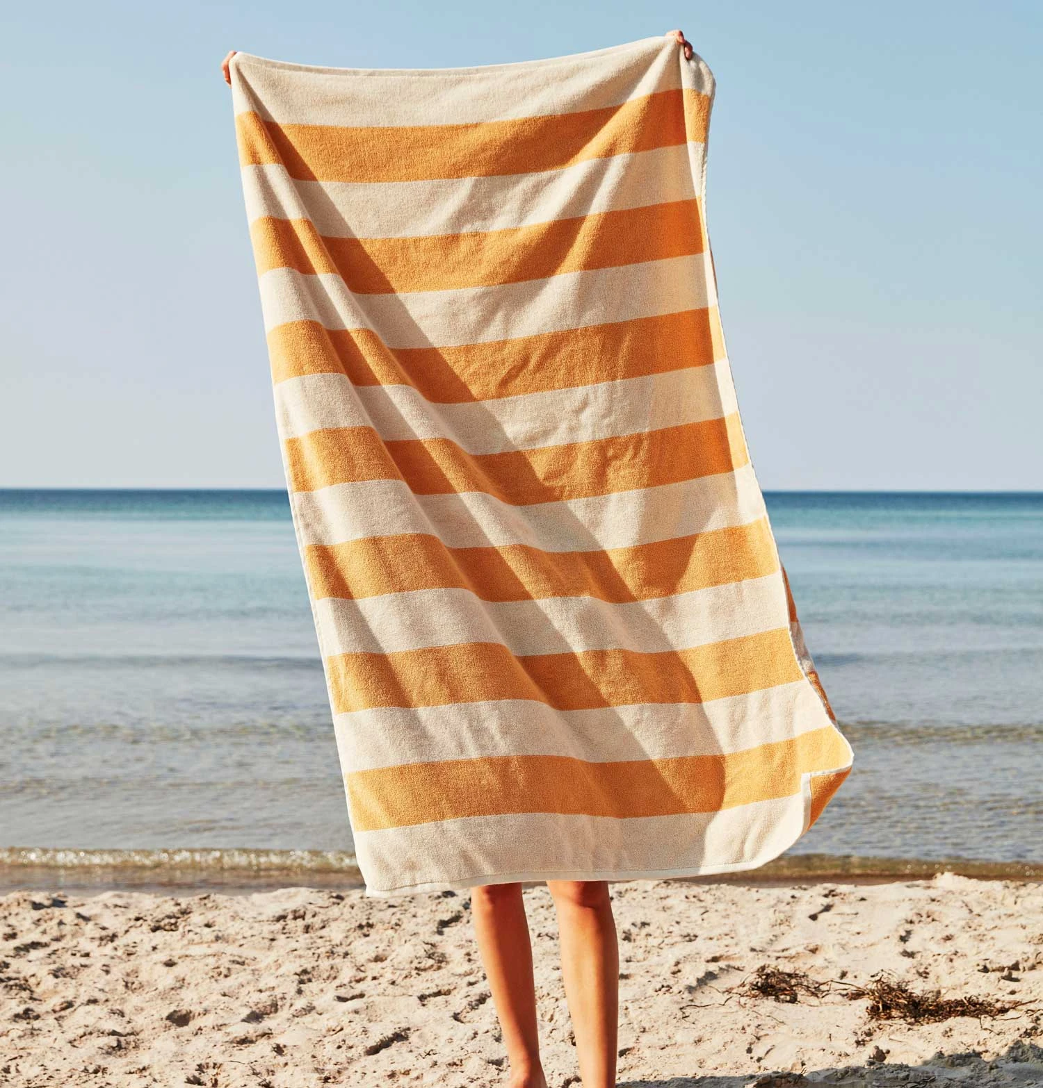 Crafted in soft, absorbent cotton, the Frotté Striped towel is designed by Amanda Borberg and features horizontal stripes in muted colours. An everyday essential for the bathroom, beach or pool.