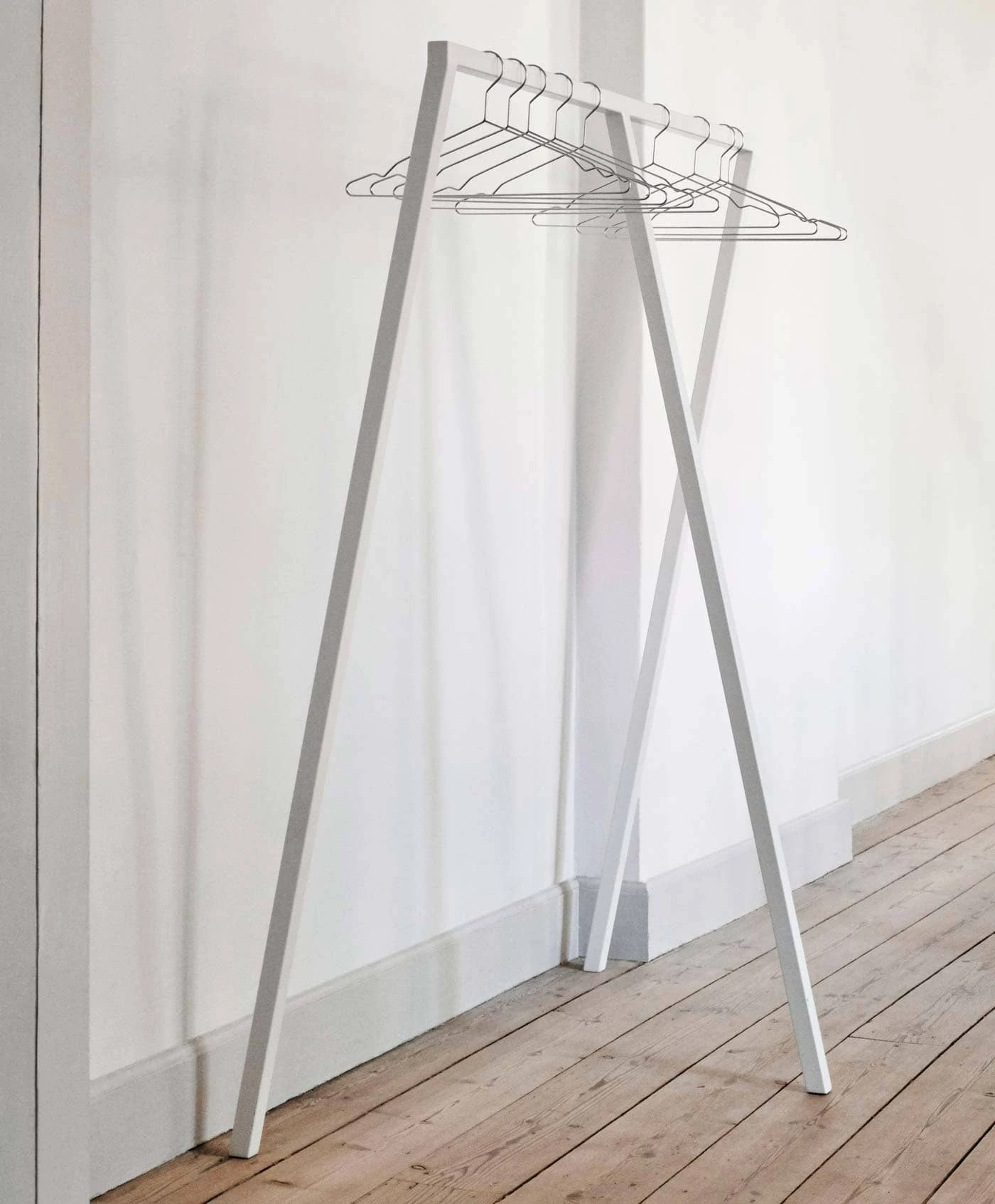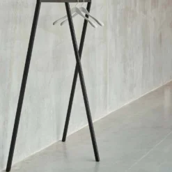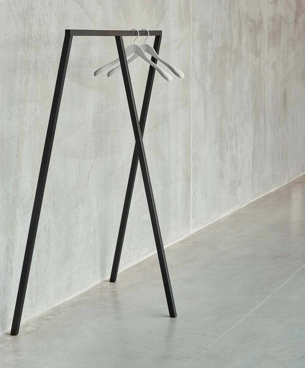 Loop Stand Hall is a simple wardrobe stand that is equally suited for public and private settings, offering a simple and discreet wardrobe solution.