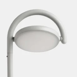 Inspired by the bent tubing around local street signs, design duo kaschkasch have created a family of table and floor lamps sharing the same arched silhouette. The light source comes from a tilting circular disc, which can be adjusted to create both an indirect ambient and direct task light beam. The lamp body is crafted from powder coated die cast aluminium and steel, and the light source is an injection moulded polycarbonate opalescent lens that conceals a flat panel of light. Both lamp designs are available in different colours and are suitable for a variety of private and corporate settings.