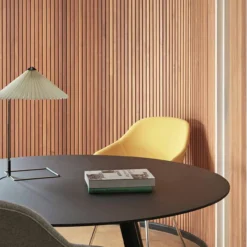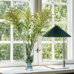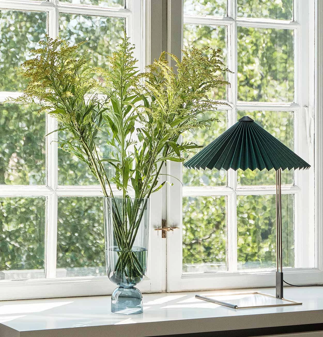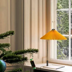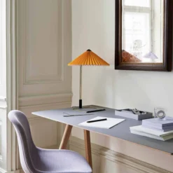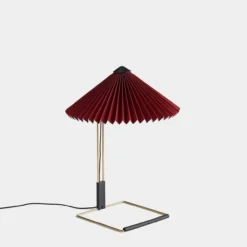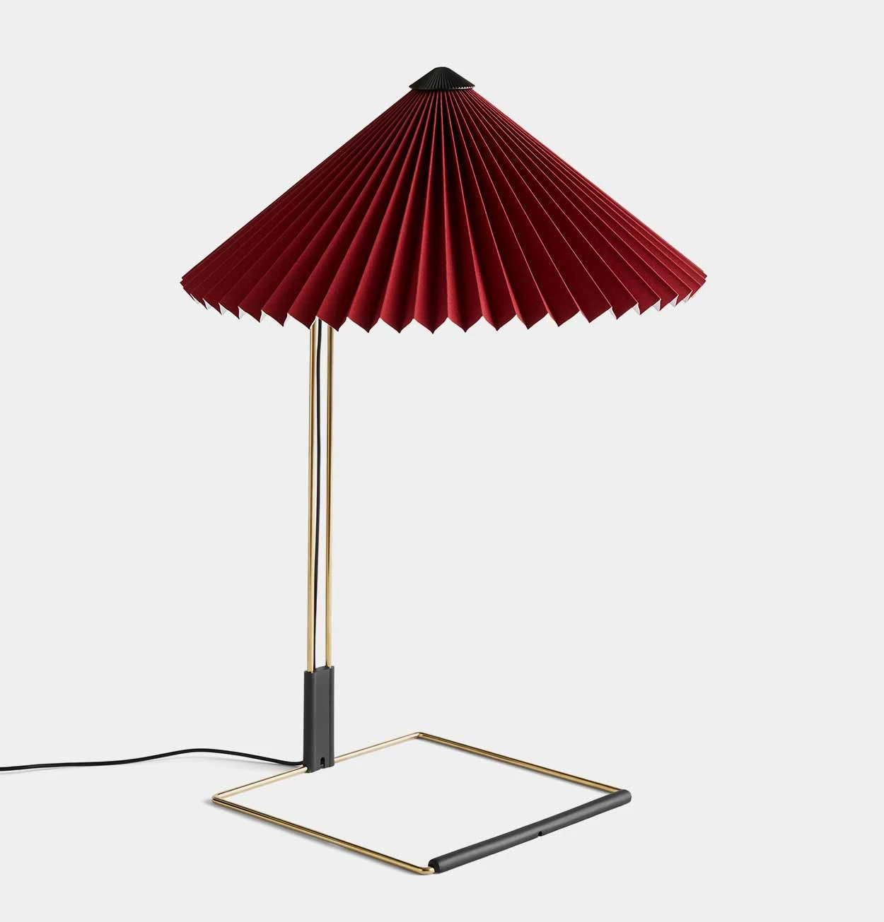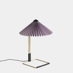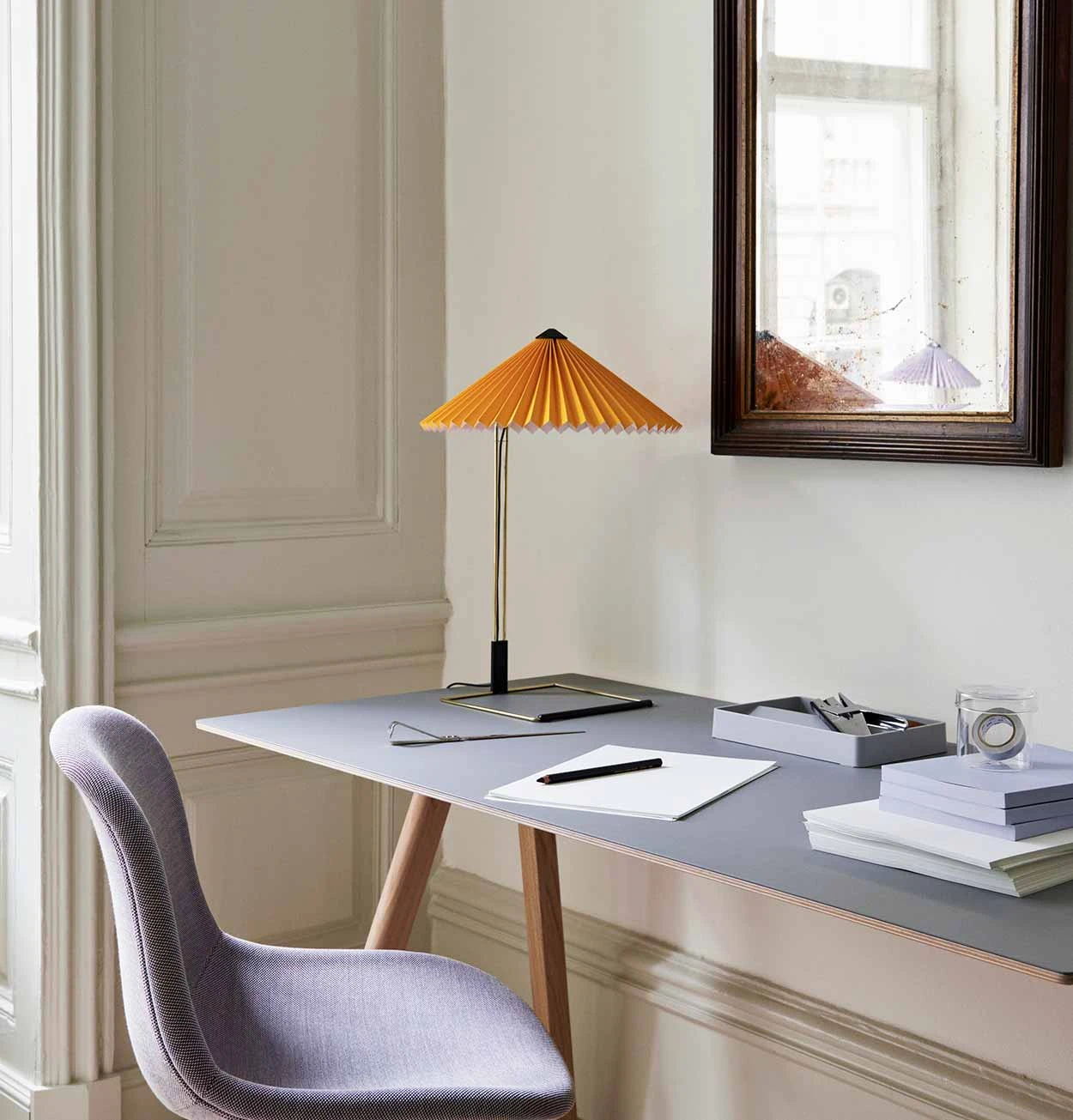 Designed by Inga SempΓ©, the Matin Table Lamp offers a contemporary yet poetic design, with a construction that combines visual delicacy with physical robustness. It consists of a steel wire bent frame finished in polished brass with matte black hardware and is paired with a pleated cotton shade in a variety of vibrant colours. The light source is an integrated LED, offering a diffused light which is accompanied by a digital in-line dimmer control to adjust the output of light if required.