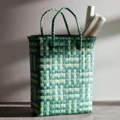 Handmade from recycled plastic strips, Bertjan Potβs Maxim Bag is a colourful bag featuring a distinctive log cabin pattern. The durable woven construction and original design make the bag a functional and fashionable accessory for shopping and carrying items, as well as for using for storage at home. The bag is available in different sizes and colours.