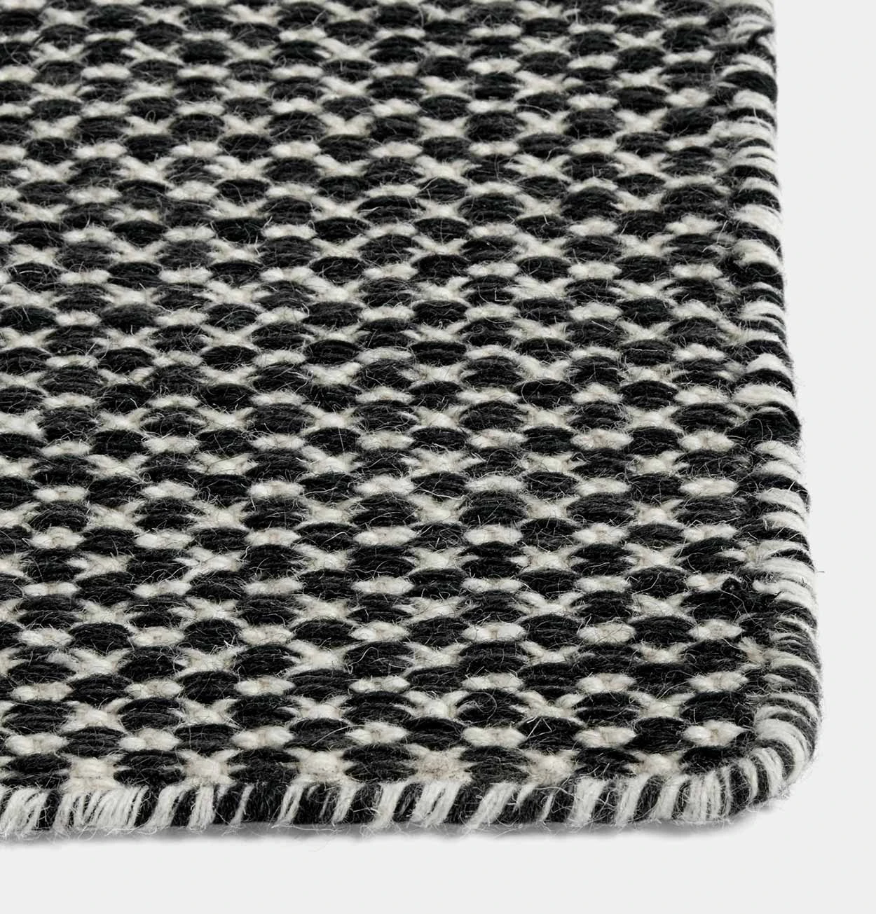 HAY’s Moiré kelim is hand-woven in India from different combinations of coloured wool and features serged edges. Available in four rectangular sizes in a variety of colour combinations.
