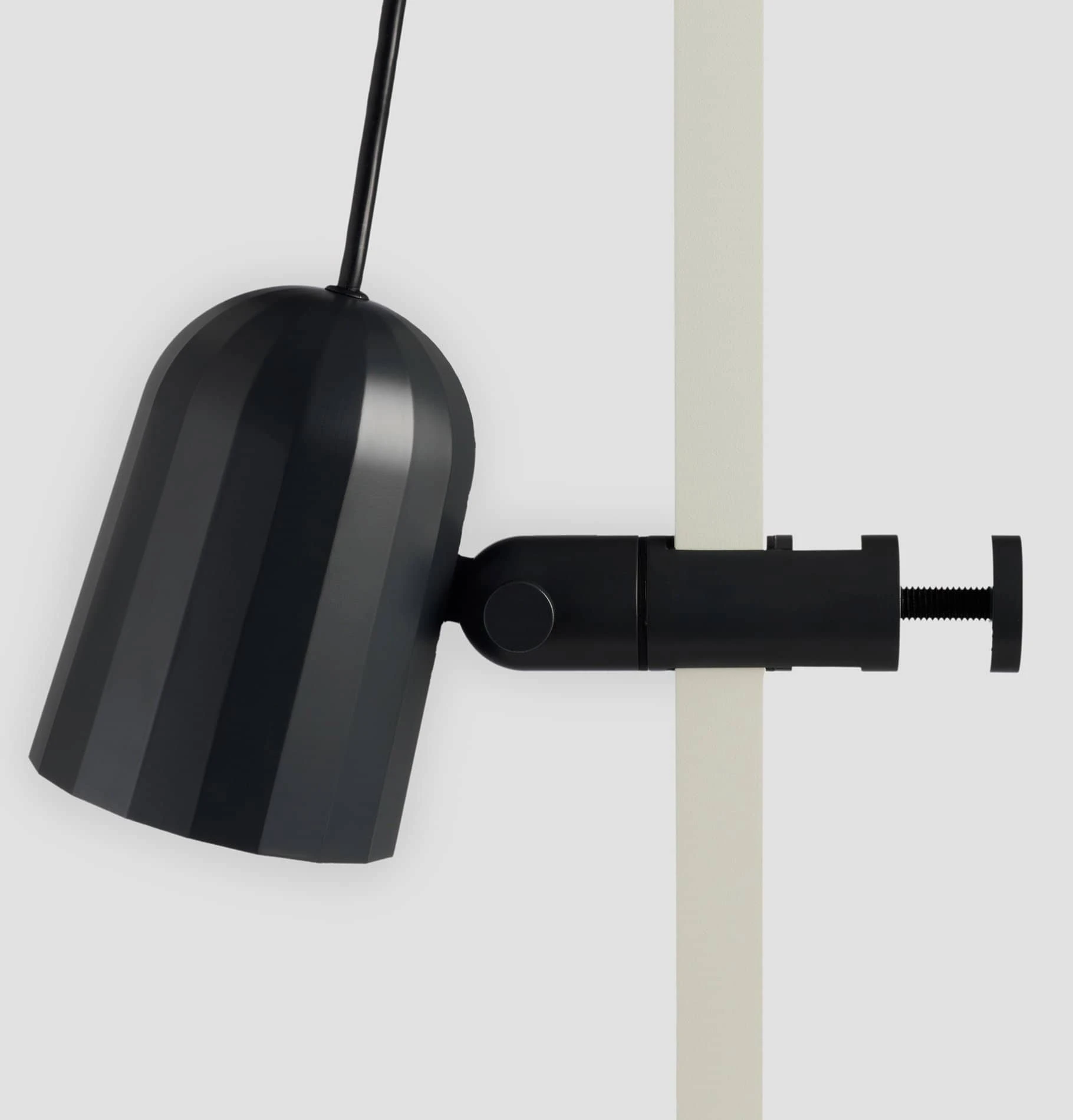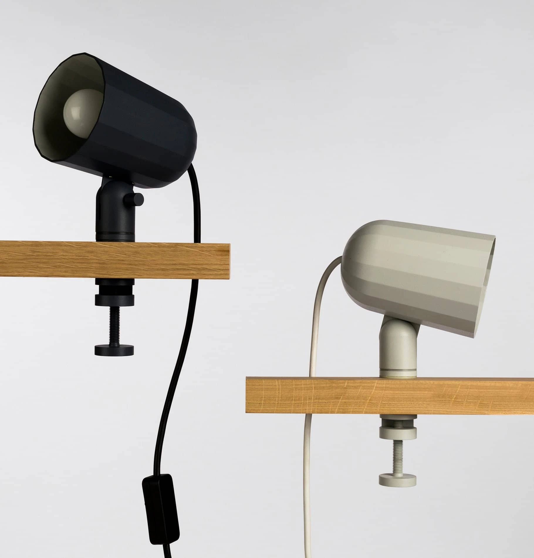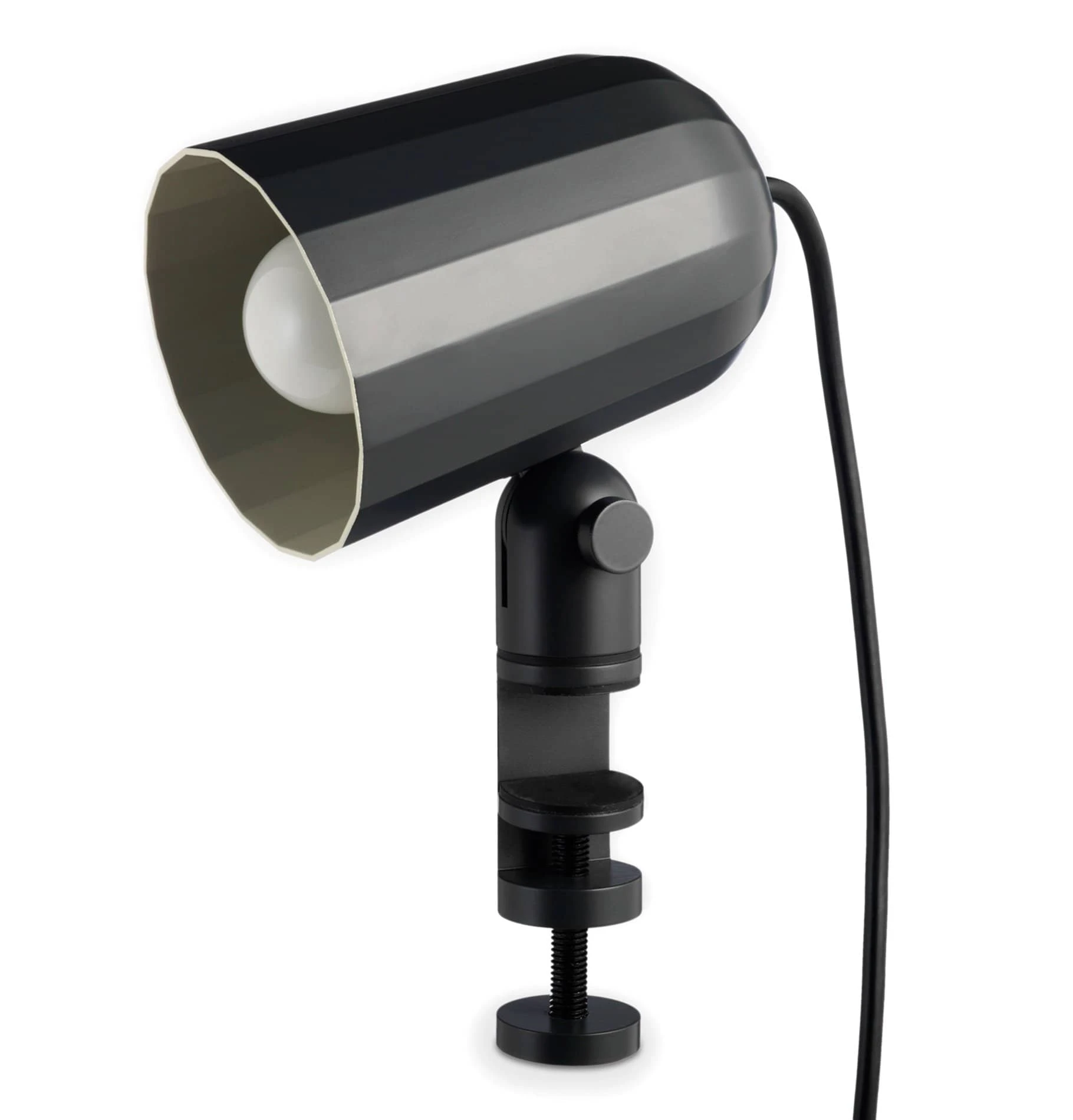 Noc is a universal clamp light with a faceted die cast aluminium shade. Its machined aluminium stem and clamp offers two points of adjustment and can be used on table tops, shelves and headboards.