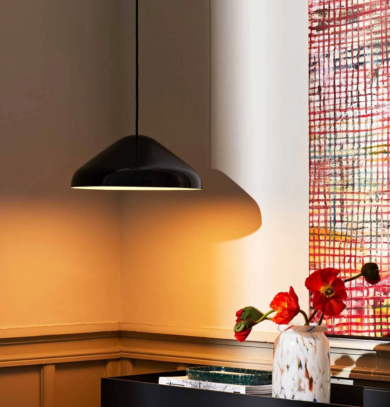 he pendantβs shades are crafted from steel with a high-gloss finish and are available in different sizes and colours. Their functionality and the deliberate simplicity of the design make them suitable for a wide range of spaces and uses in domestic and corporate environments.