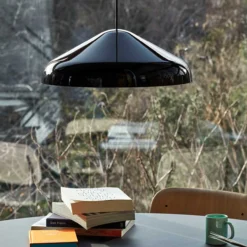 he pendantβs shades are crafted from steel with a high-gloss finish and are available in different sizes and colours. Their functionality and the deliberate simplicity of the design make them suitable for a wide range of spaces and uses in domestic and corporate environments.