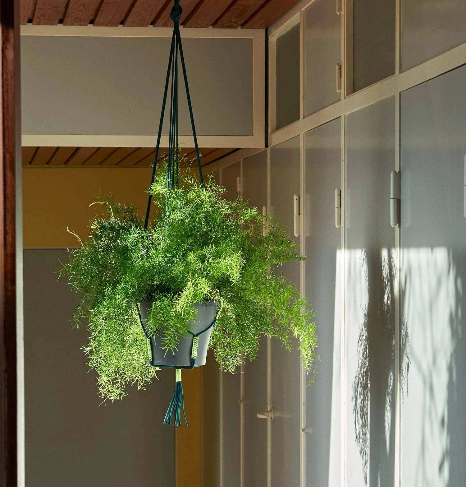 Designed by the Danish design brand Phanta, the Phanta Plant Hanger is a colourful β70s-inspired macrame plant holder that can be suspended from a ceiling or shelf. Its flexible design can hold a wide variety of flowerpots, baskets and containers, offering an original and decorative solution for displaying plants and other ornaments. Handmade from recycled polyester, it is available in different colour options.