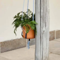 Designed by the Danish design brand Phanta, the Phanta Plant Hanger is a colourful β70s-inspired macrame plant holder that can be suspended from a ceiling or shelf. Its flexible design can hold a wide variety of flowerpots, baskets and containers, offering an original and decorative solution for displaying plants and other ornaments. Handmade from recycled polyester, it is available in different colour options.