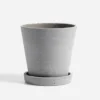 Plant Pot is a series of minimalist flowerpots with matching saucers. They are made of lightweight and durable polystone and feature an inside coating for extra protection. The drainage hole at the bottom allows any excess water to escape into the saucer. Suitable for indoor and outdoor use, though not outside during winter months in freezing weather. Available in different sizes and colours.
