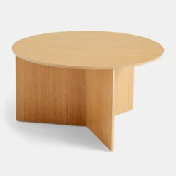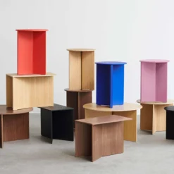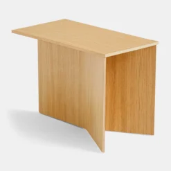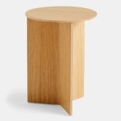HAY’s Slit Table is a geometric wooden table inspired by paper origami techniques. The slim frame appears folded beneath the tabletop, creating a simple yet sculptural form that is reminiscent of traditional Japanese paper art. The Slit Table is available in different shapes and sizes, and is offered in various wood types and finishes. Compact and versatile, it can be used on its own or arranged in clusters in diverse private or public settings.