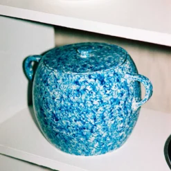 Part of a design collaboration between HAY and artist Laila Gohar that celebrates the joy of meeting family and friends over a good meal, the Sobremesa Bean Pot is a decorative casserole dish designed to enhance mealtime atmospheres. Featuring a classic bean pot shape with small handles and a lid, it is hand painted with a beautiful pattern that gives each pot a unique quality. Crafted in ovenproof stoneware, it can be used for cooking, serving or storage.