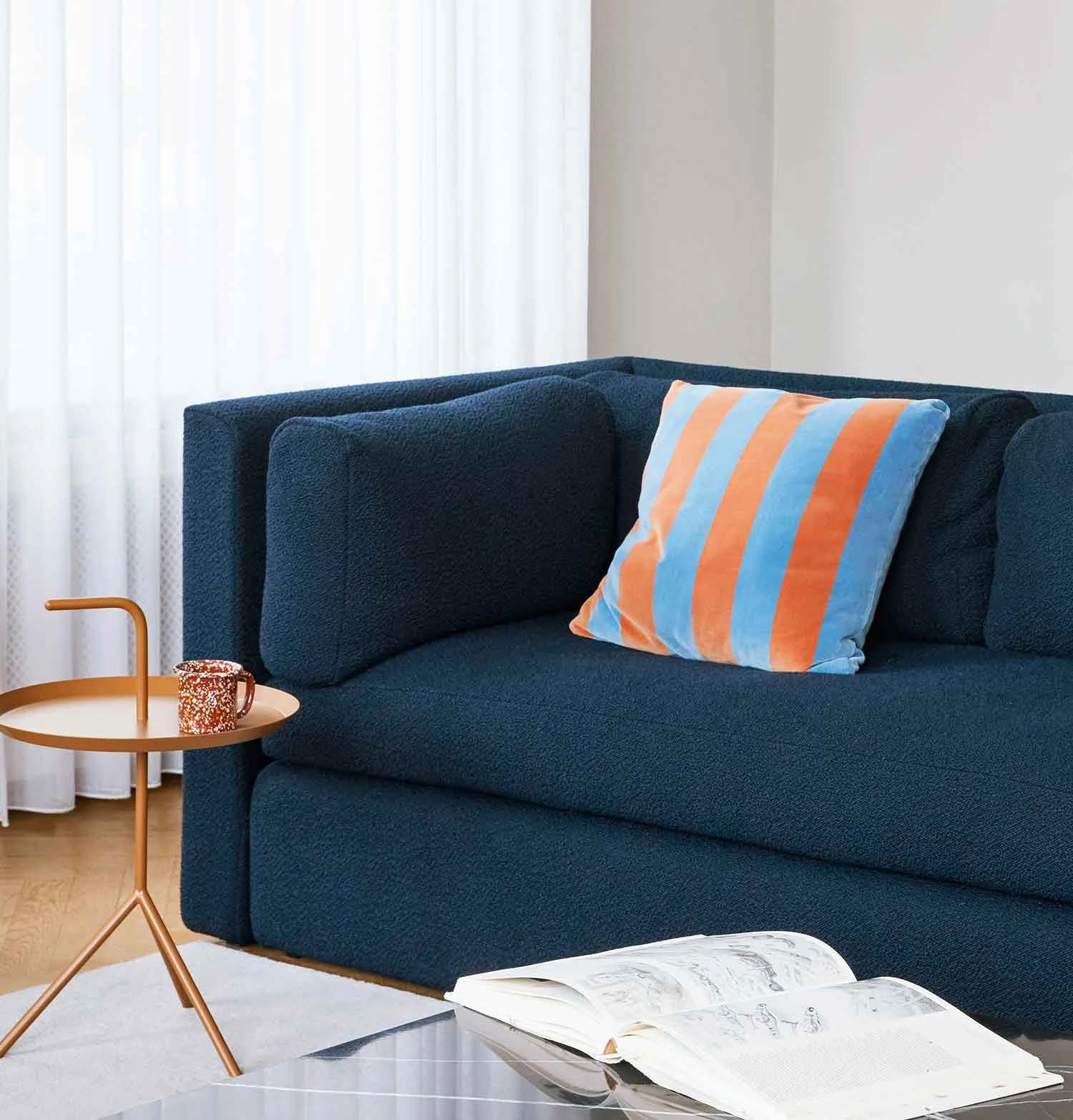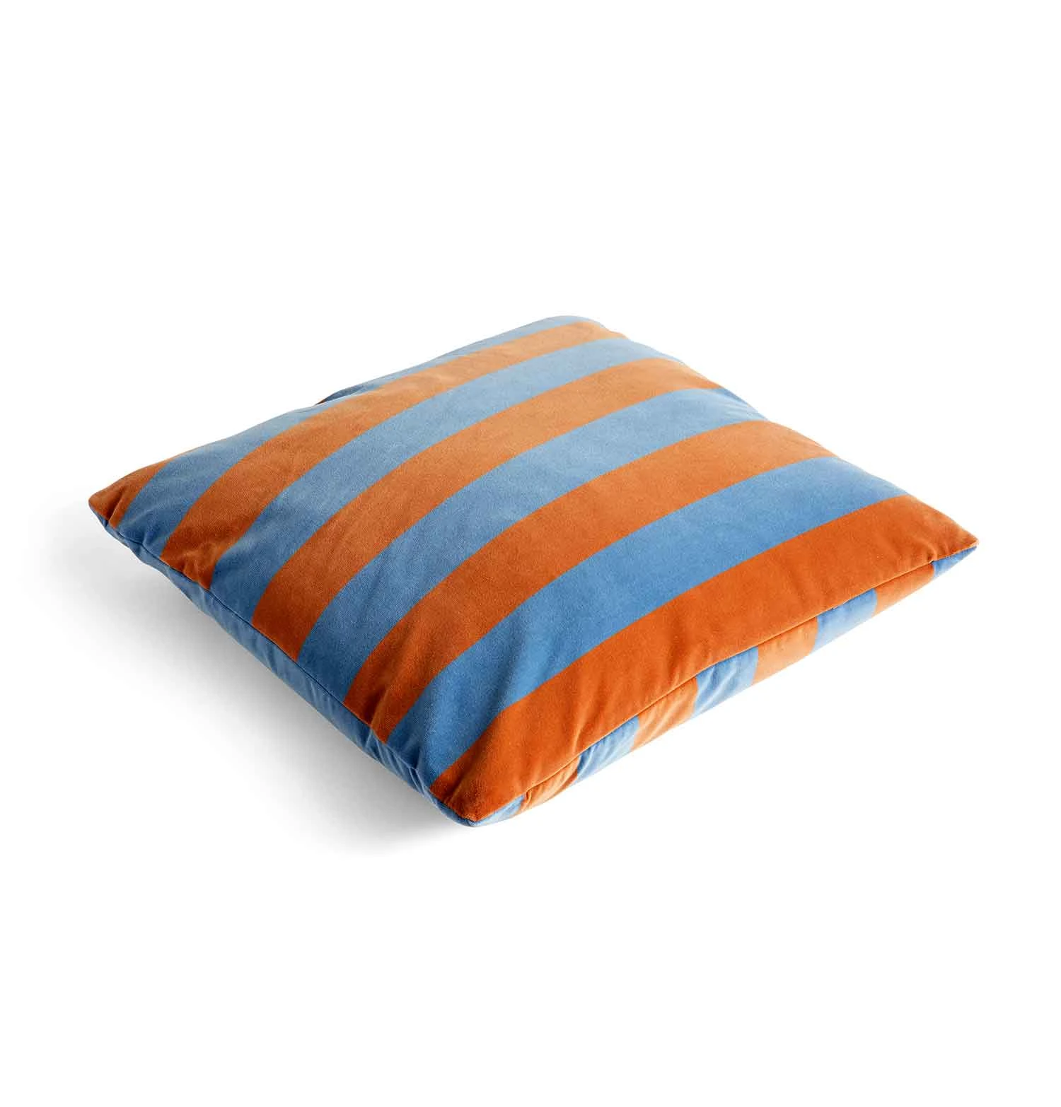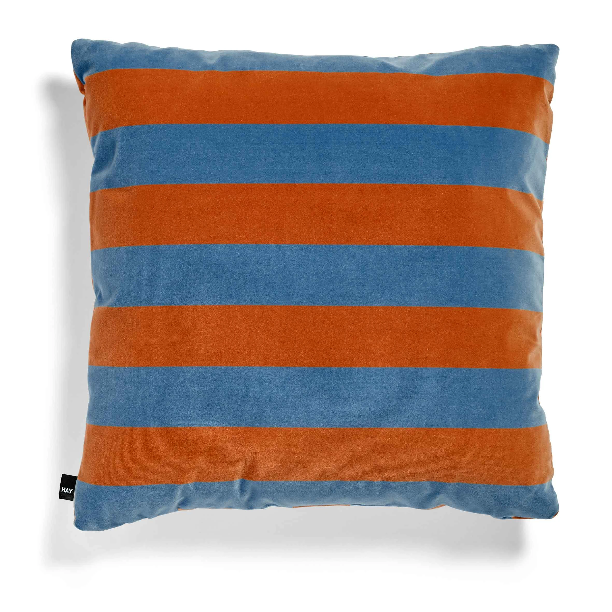 HAYβs Soft Stripe Cushion series comprises an assortment of colourful cushions in contrasting stripes in two different sizes. The XL design has horizontal stripes on one side and vertical stripes on the other, while the smaller size has stripes in the same direction on both sides. The outside cover is made in velvet and features a soft feather filling.