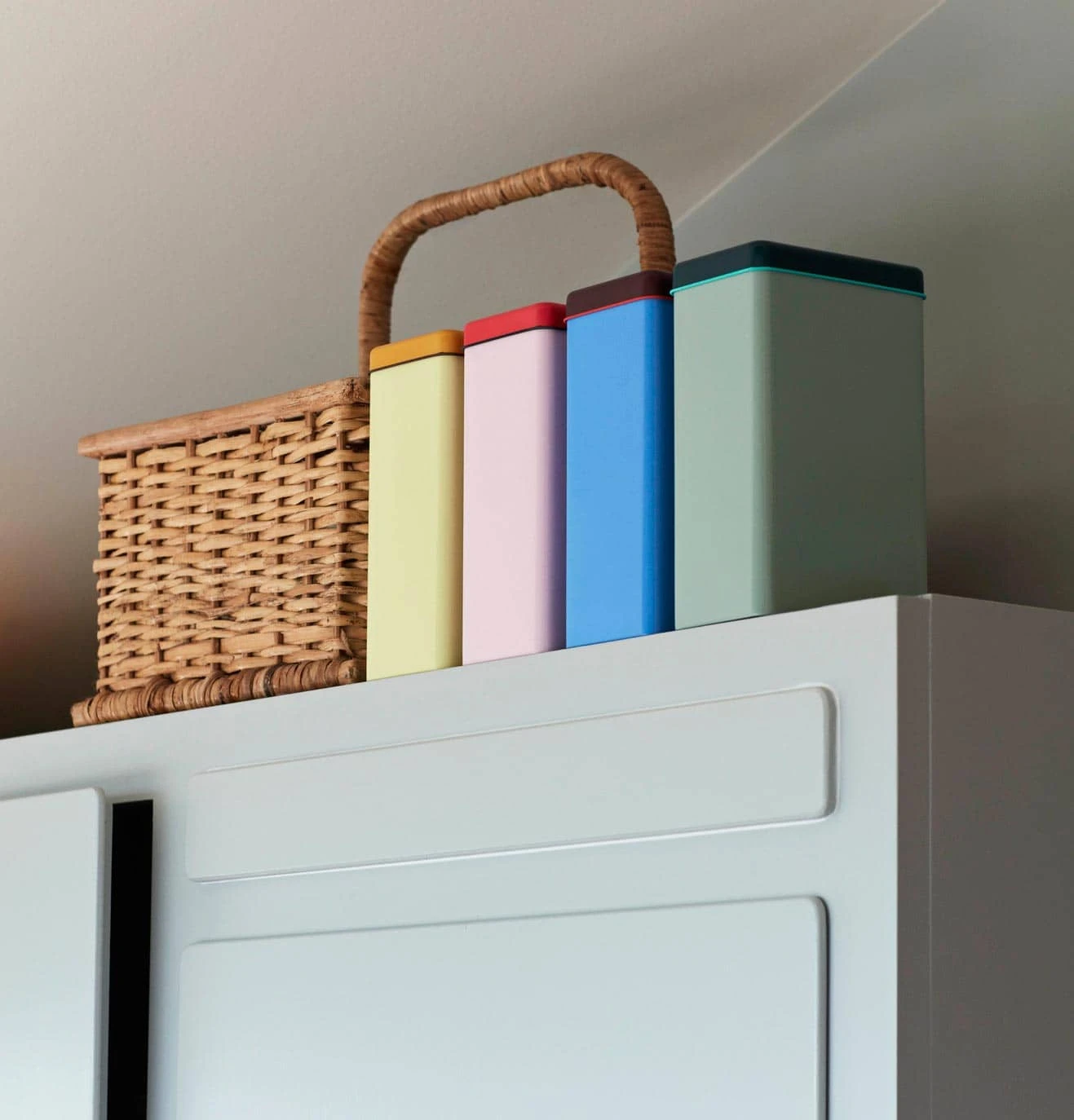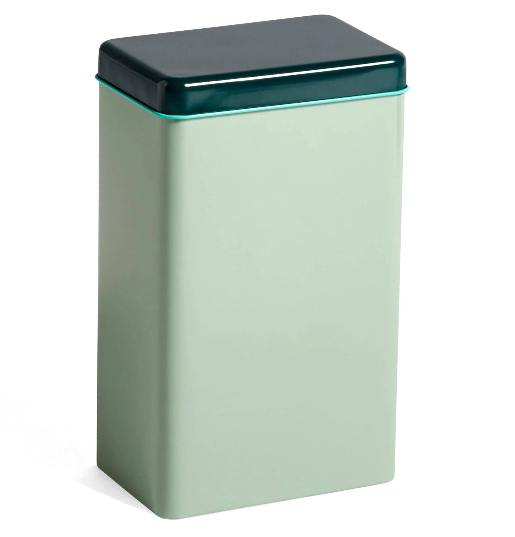 Designed by George Sowden, the Sowden Coffee Tin is a colourful tinplate container with an airtight lid that is suitable for coffee and other dry foods. Available in a variety of colours.