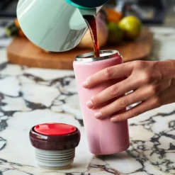 Contrasting colours make for a playful expression in George Sowdenβs Travel Mug. Crafted in stainless steel with a plastic lid, the functional design is suitable for containing hot and cold drinks.