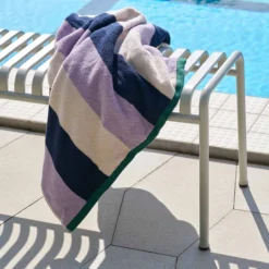 Featuring a tricoloured striped design in soft OEKO-TEX® cotton, the Trio Bath Sheet is a colourful and contemporary essential for the beach, pool or bathroom. Subtle contrast details at the ends complete the palette and add an original HAY edge. Available in different colour combinations.