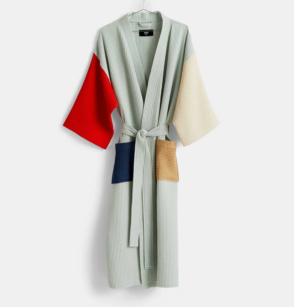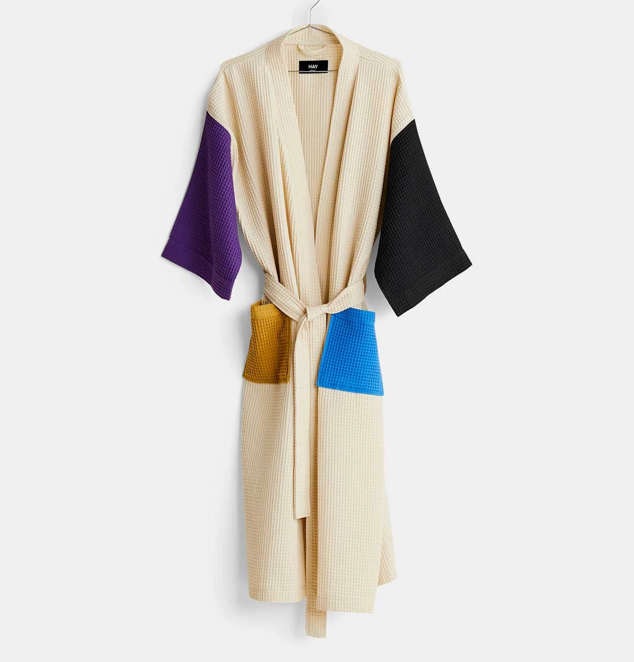 The Waffle Bathrobe is a series of versatile bathrobes in soft and durable OEKO-TEX® cotton-blend with a distinctive three-dimensional waffle texture. Featuring a relaxed shape, pockets and matching tie belt, it is a stylish and functional design that can be used around the house, on the beach or by the pool. Available in different mono-colour options or in a multi-coloured variant with a modern colour-blocked design.